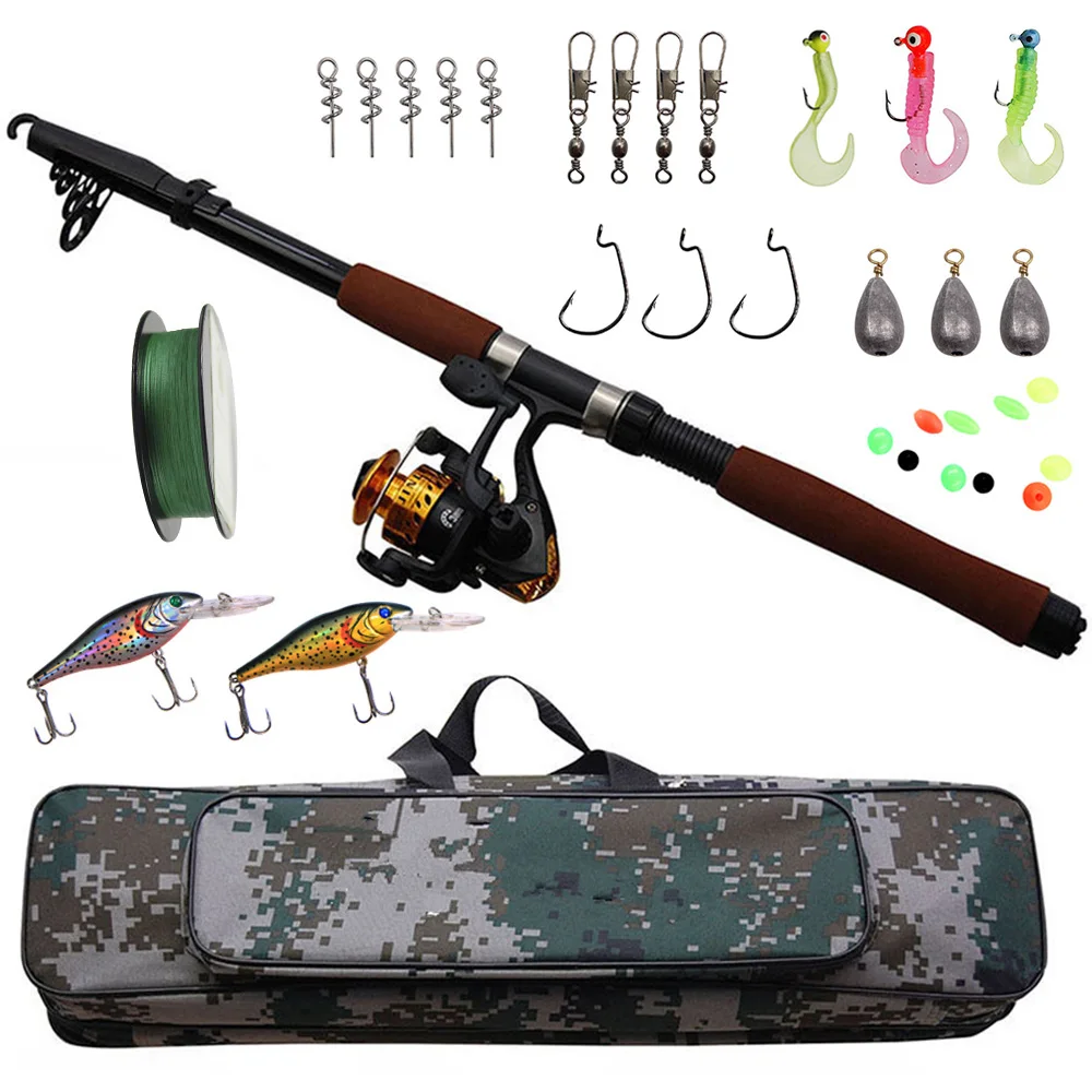 Best Offer of Hyaena Telescopic Fishing Rod Combo and Reel Full Kit Spinning Hooks Jig Head Fishing Reel Gear Pol