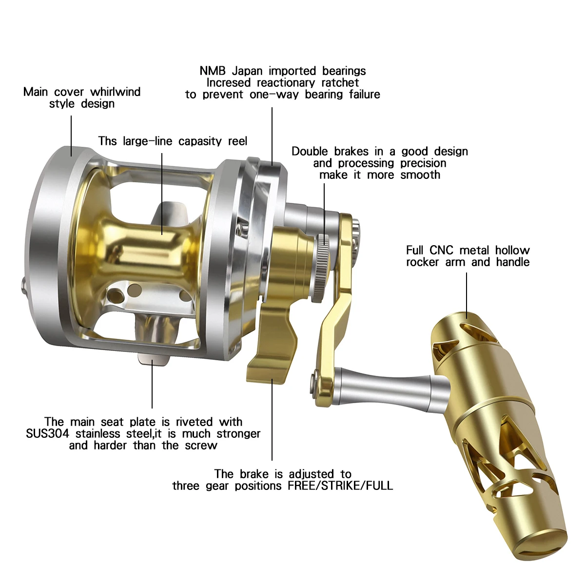 Best Chance for Jigging Reels (Left/Right-Hand) Trolling Reels Aluminum CNC Machined Saltwater Fishing Reels 10BB N